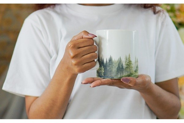 Taza Acuarela Paisaje Arboles COD 1447
