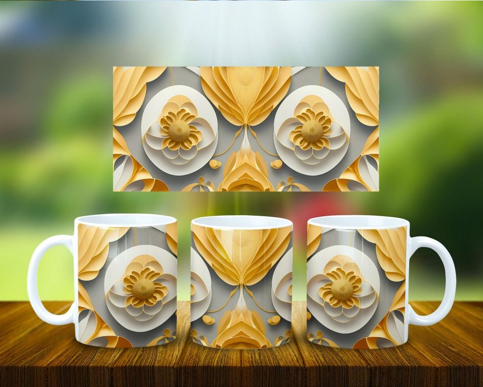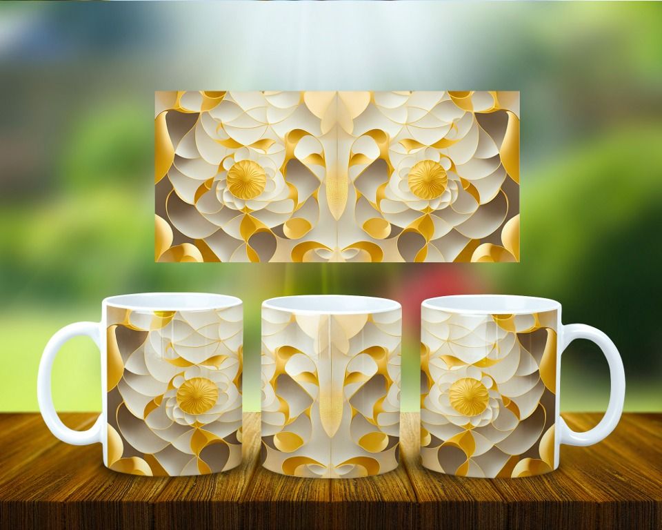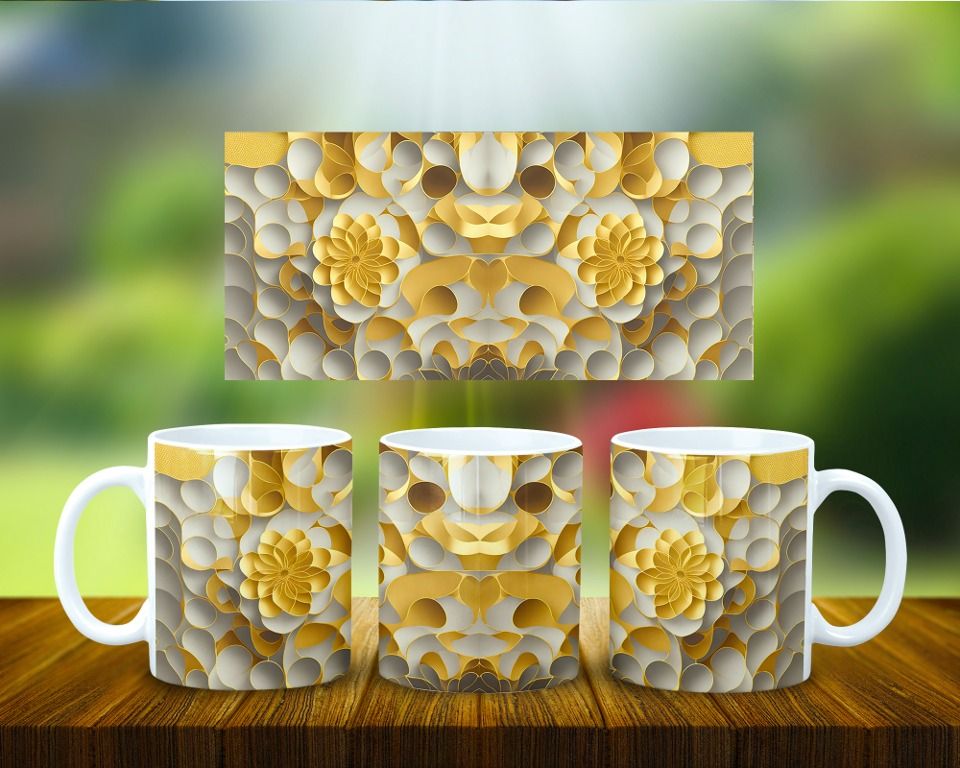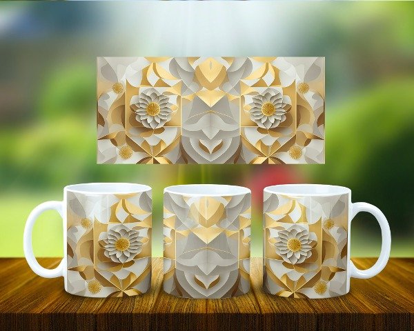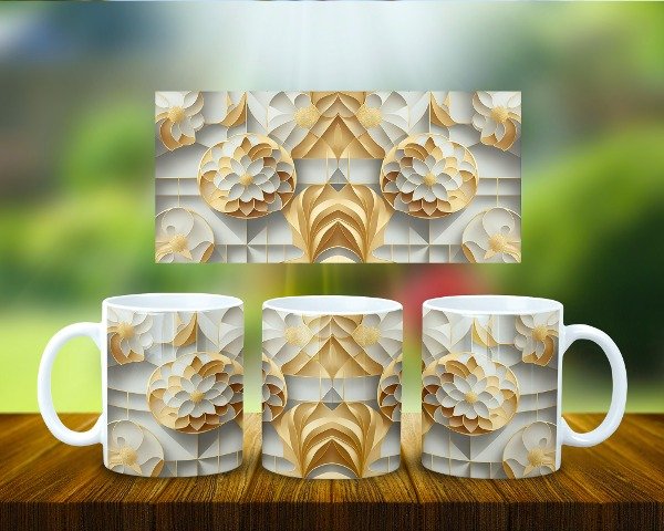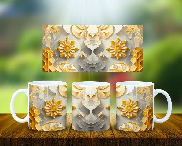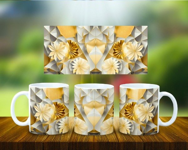 Taza Papel Arte 3D Geométrico Oro COD 1948