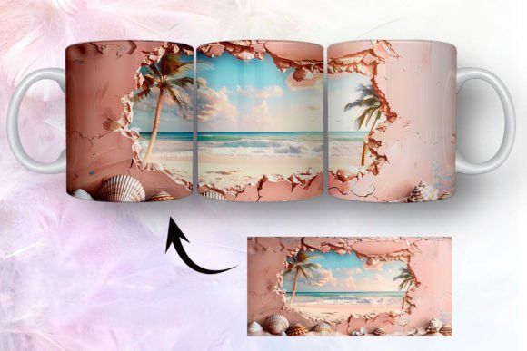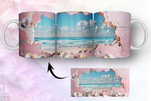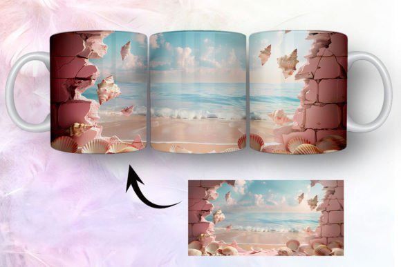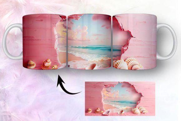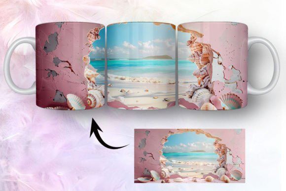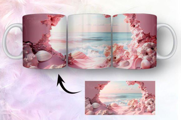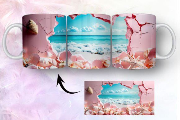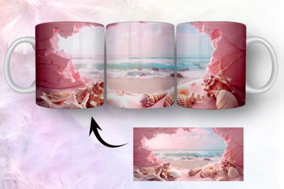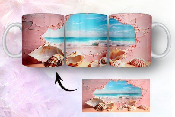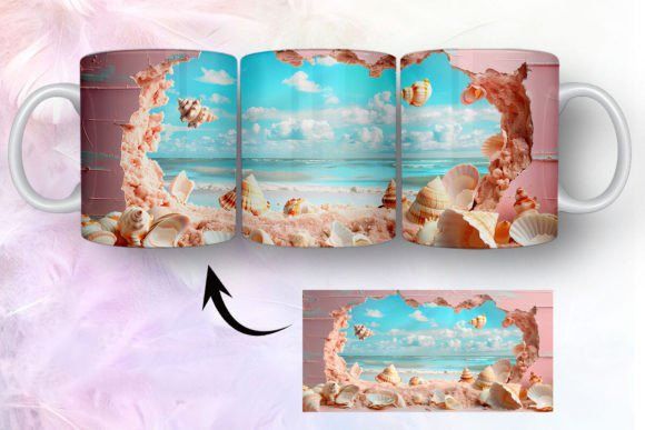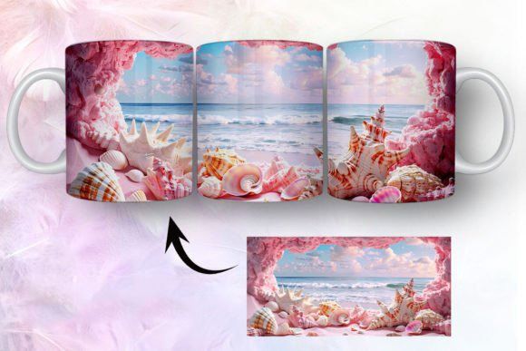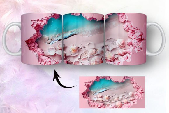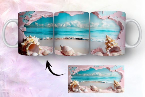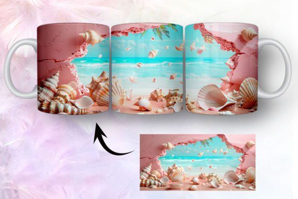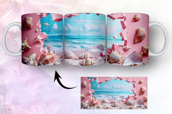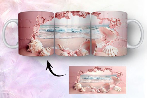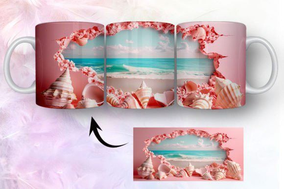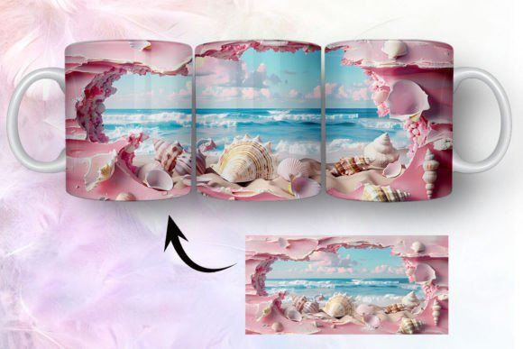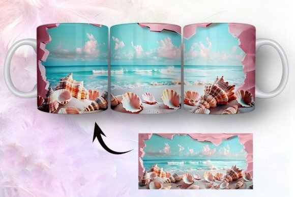 tazas de playa y conchas marinas en 3D COD 2435