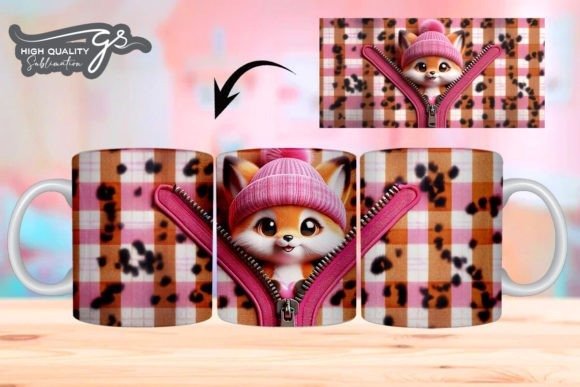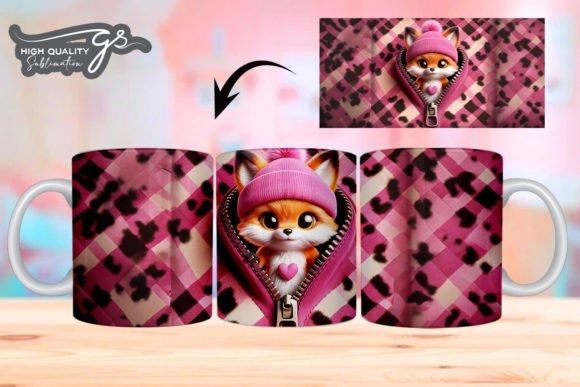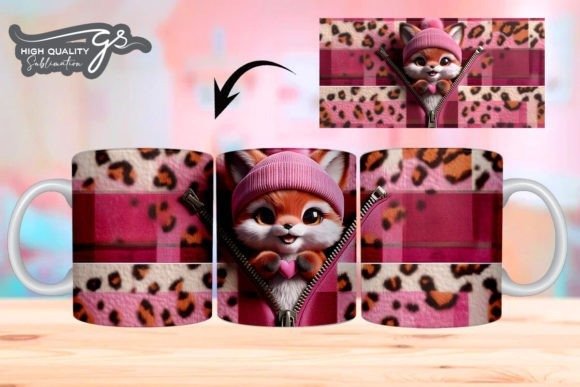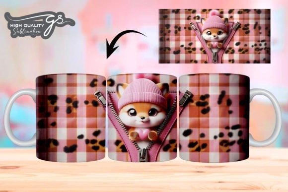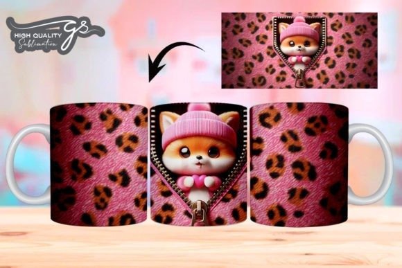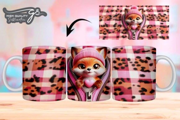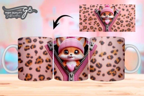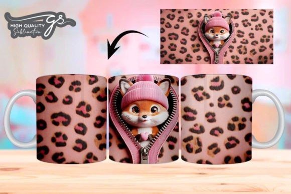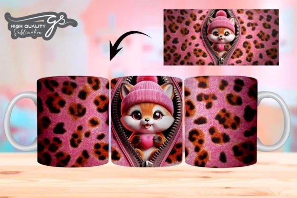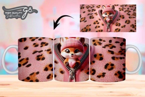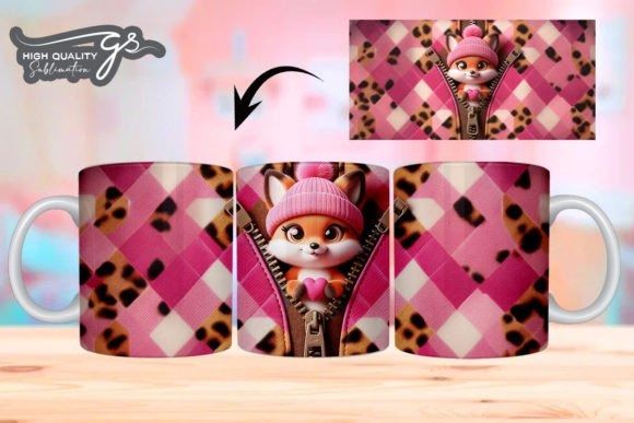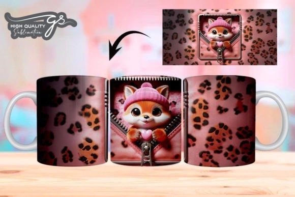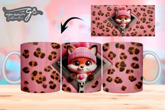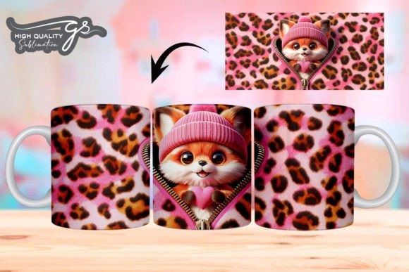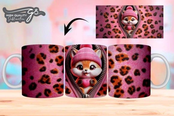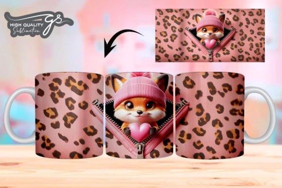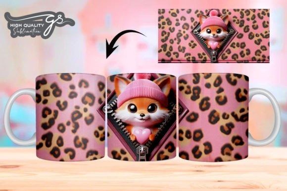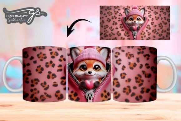 e tazas de San Valentín 3D de Leopard Fox COD 2195