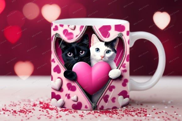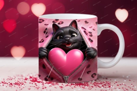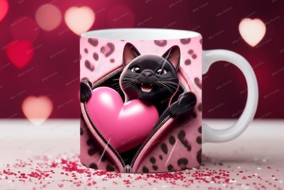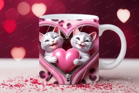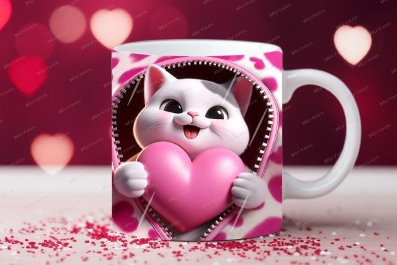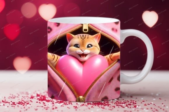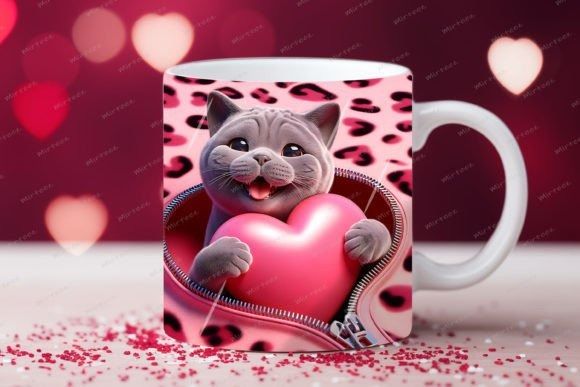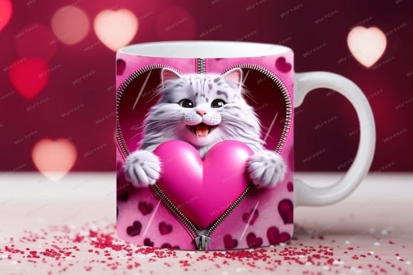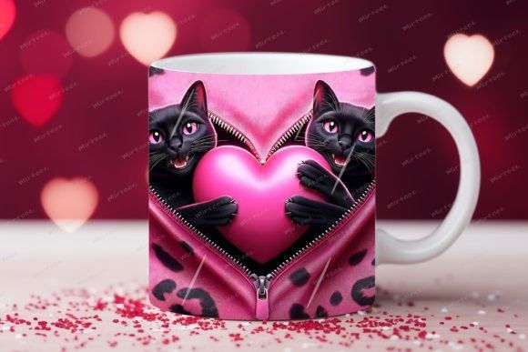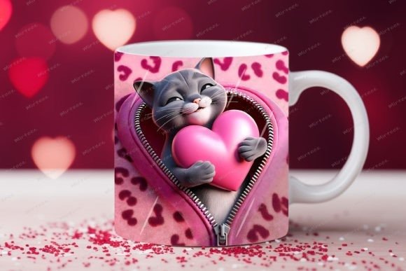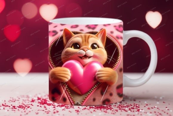 taza de San Valentín 3D con cremallera de gato COD 2177